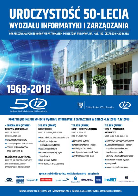W dniach 4 - 7 grudnia br Wydział Informatyki i Zarządzania Politechniki Wrocławskiej obchodzi swoje 50-lecie.