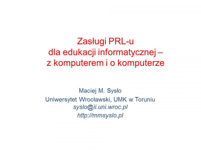 Otwieramy nowy blok archiwalny - HISTORIA INFORMATYKI - MATERIAŁY DYDAKTYCZNE. W tym archiwum będą dostępne prezentacje do wykorzystania na seminariach, wykładach, konferencjach itp. Po zmianach w portalu prezentacje są dostępne również w wersji ppt, niezależnie od pdf. Wersja źródłowa pozwala na umieszczenie komentarzy do wykorzystania przez wykładowcę.