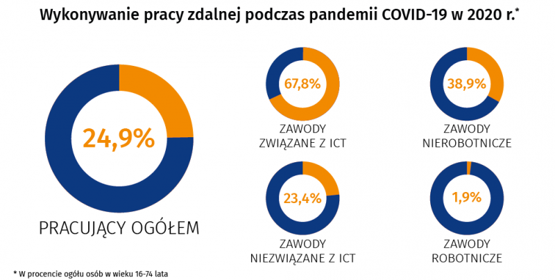 Dziś obchodzimy Światowy Dzień Społeczeństwa Informacyjnego. Zapraszamy na stronę GUS w celu zapoznania się z kilkoma danymi, a poniżej prezentujemy fragment - udział pracy zdalnej w 2020 r.